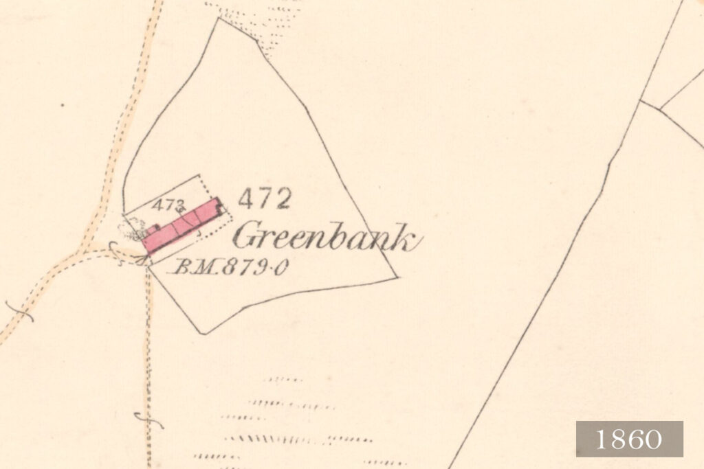 Greenbank was site of a farmstead long before the industrial age, set besiden a long-lost track that continued across the moorland to the south. It is shown on the 1858 map as a row of three simple dwellings, described as thatched, but in a poor condition.