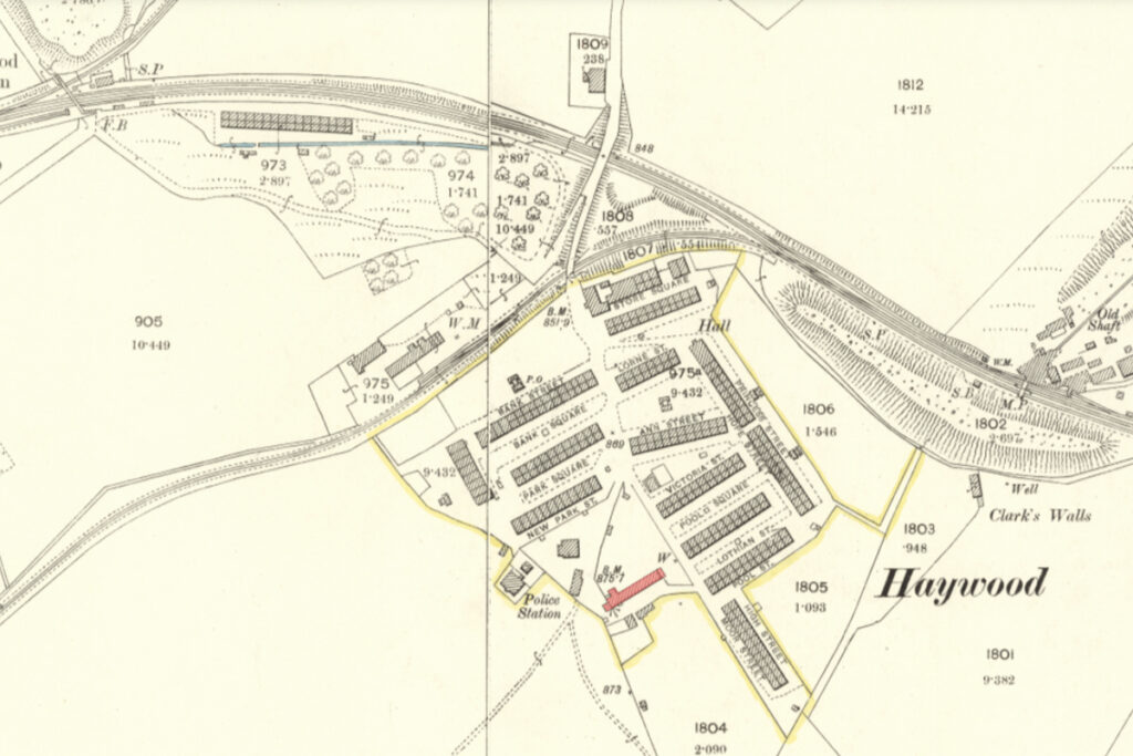 The company built the new village of Haywood to house their rapidly growing workforce during the 1860’s and 70’s. Basic brick-built rows with slated roofs were constructed without a damp course and with internal walls left unplastered, The village contained about 240 dwellings, most being single room homes arranged back-to-back within a row. To serve the remote community, the company opened a grocery store in 1864, which secured a drinks licence. Arrangements were later examined by the Truck Commission, a government body set up to ensure that workers were paid in cash rather than in goods. It was found that at Haywood, it was common to advance wages ahead of fortnightly pay days, and that a portion of advance wages were provided in the form of credit at the company store.