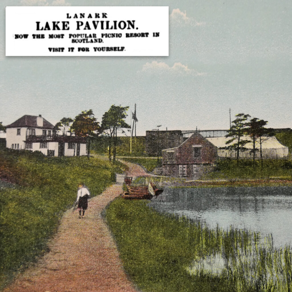 The new Lake Pavilion opened in time for Easter 1904, The Swiss-cottage style building, built into the slope up to the Hyndford Road, featured a raised terrace with a buffet and offices on the upper floor, and a kitchen, store-rooms, toilets and a shooting range (!) on the lower level. Of course, this building, in an extended form, continues to provide refreshment and pleasure as the Inn on the Loch. Two large marquees were set up for dancing and games close to quoiting pitches, archery ranges and other entertainments. On the loch there were twenty or so row boats for hire and a substantial steam launch offering leisurely cruises around the island and the distant bay of the lake. It’s unclear precisely how this grand project was funded, however the year after it’s opening, the buildings of the Lake Pavilion were sold by Lanark Council to A.P. Paul.