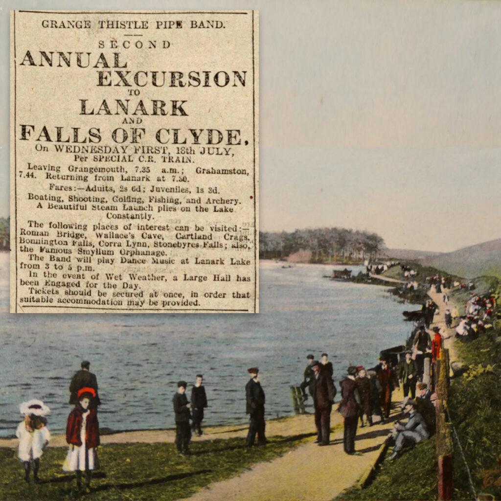 The Lanark district and the beauties of the Clyde Valley have always attracted tourists, and with the coming of the railways many more day-trippers enjoyed the rocky splendour of the Falls of Clyde, considered by some as “the Switzerland of Scotland”.