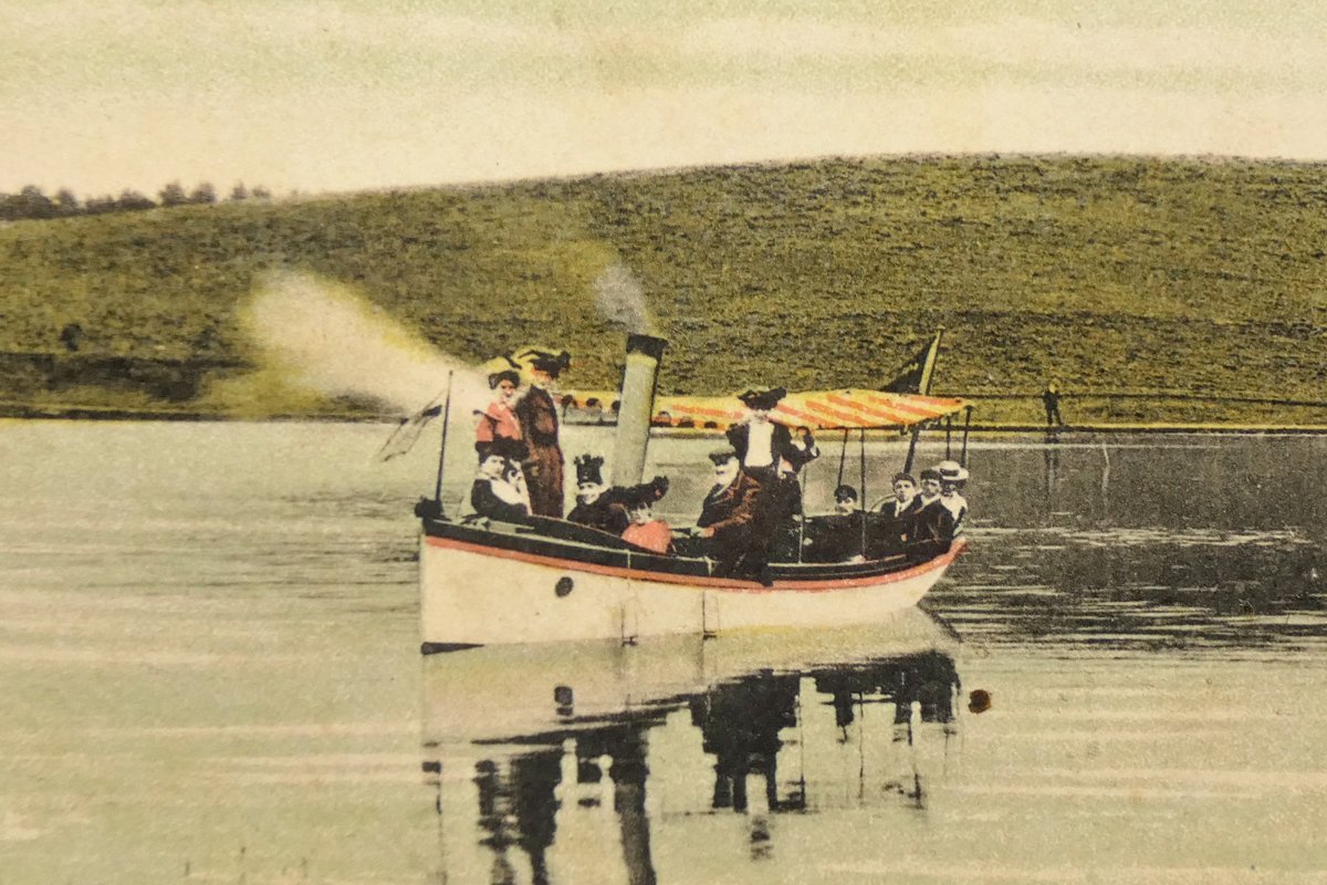 The steam launch (sometimes described as a steam yacht) was the star attraction on the loch, but didn’t always coexist comfortably with a large fleet of erratically piloted row-boats. In 1906 two ladies (members of staff at Larkhall Academy) were tipped into the water by a wave from the passing steamboat, A light-hearted report in the local paper joked that this was due to the bad handling of the rowing boats, however this suggestion prompted a furious response from the Rector of the Academy defending the seamanship of his staff and blaming the management of the steamboat. We’ve found no reference to the steam launch on the loch after 1908, so perhaps safety considerations influenced its removal to somewhere with less crowded waters.
