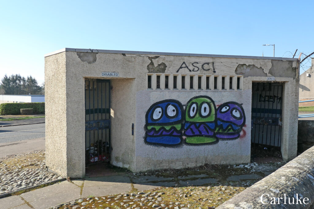 Thirty years ago Clydesdale boasted over twenty public toilets, conveniently sited in most towns, villages, and public parks. Not all were the most pleasant of facilities; vandalism, poor maintenance, and antisocial behaviour were a constant problem, however they served their purpose at a time of need. All were consigned to history in 2015 when the Council closed all remaining public toilet facilities. A handful of old toilet blocks still survive, boarded up and abandoned; the relics of a more considerate and less desperate age.