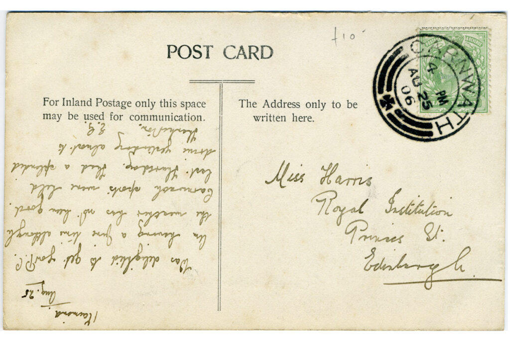 Printed postcard, published by Jackson, Carnwath, postmarked 25th August 1906. CH25.0079