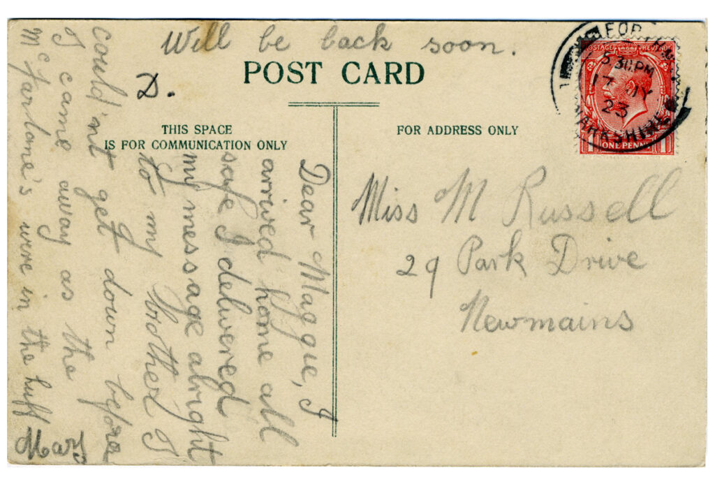 Printed postcard, postmarked 1923. CR25.0033