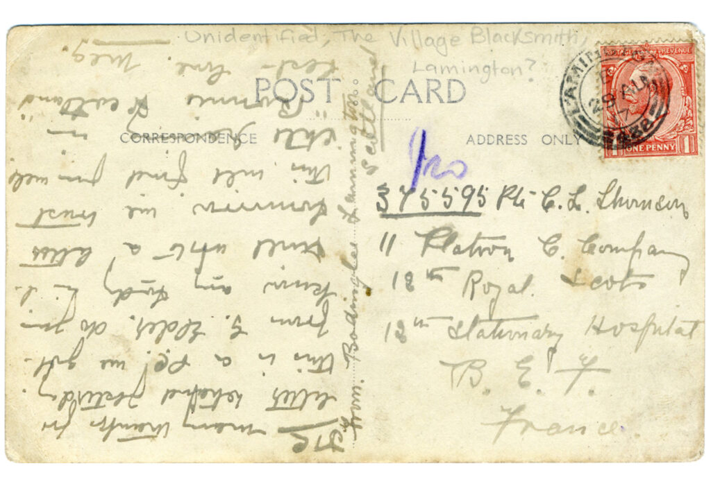 Photographic postcard, perhaps illustrating Lamington, posted 29th August 1917, CH25.0062